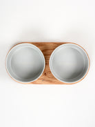Barcelona Double Dog Bowl (oiled oak, grey)