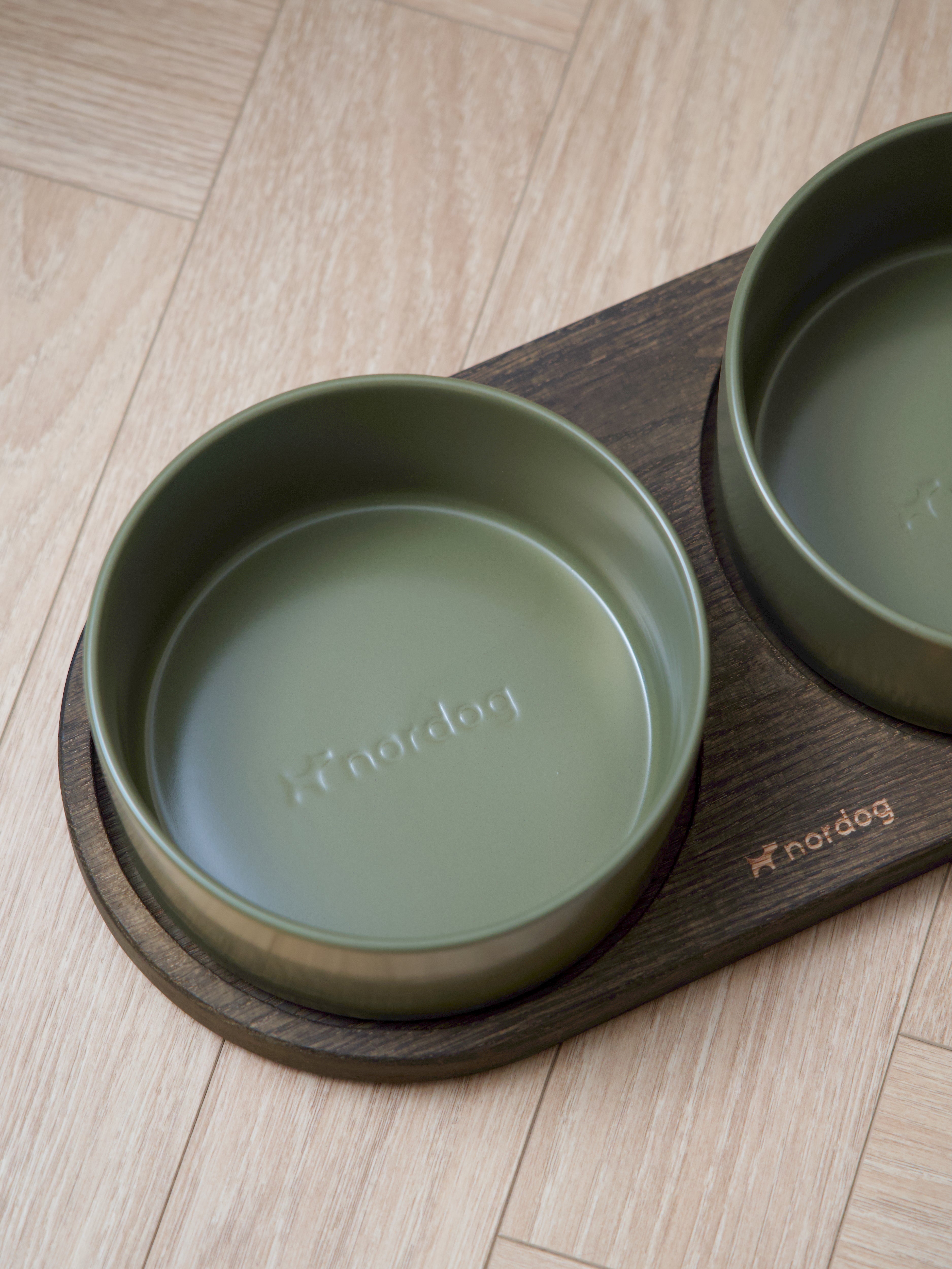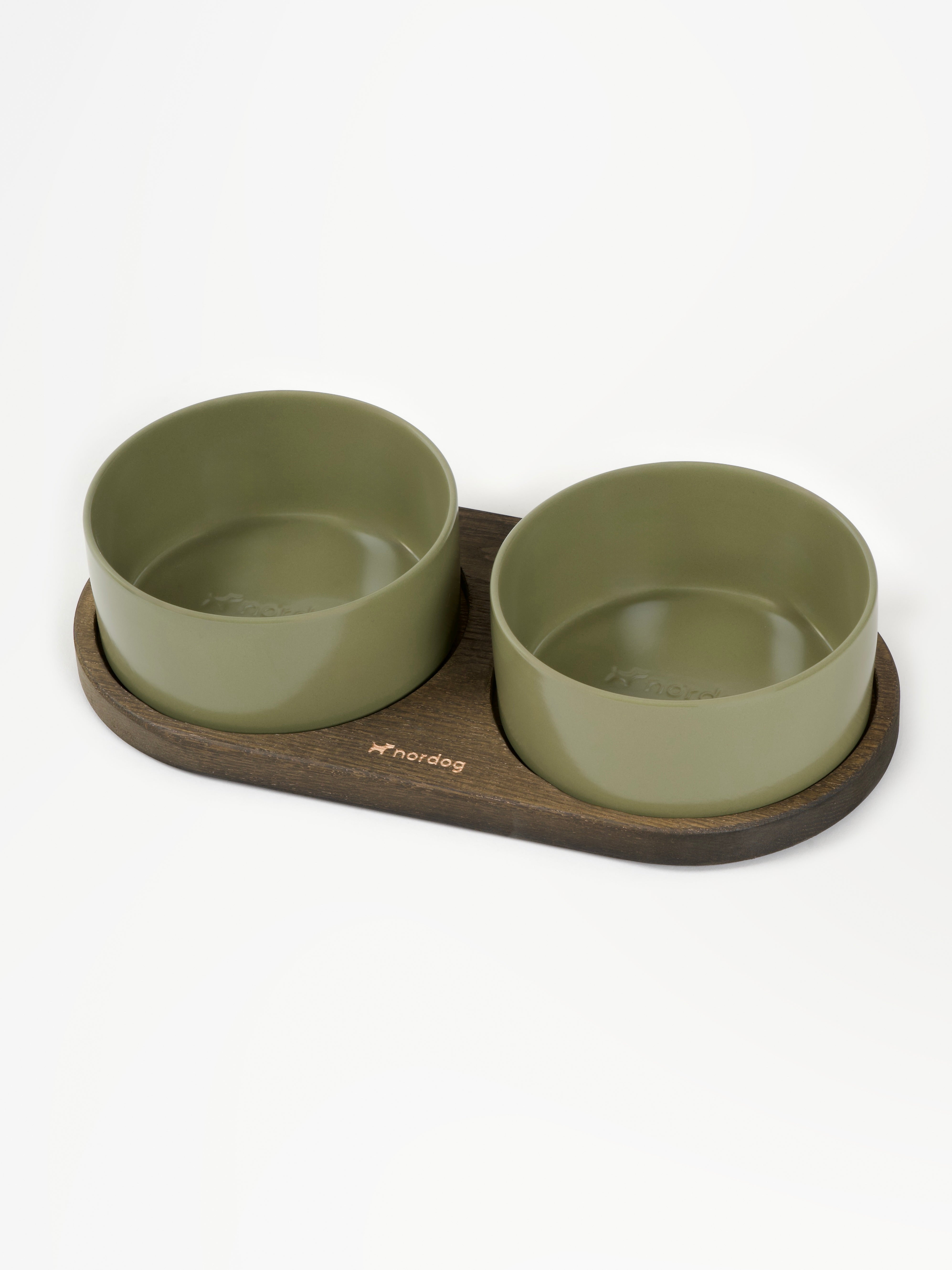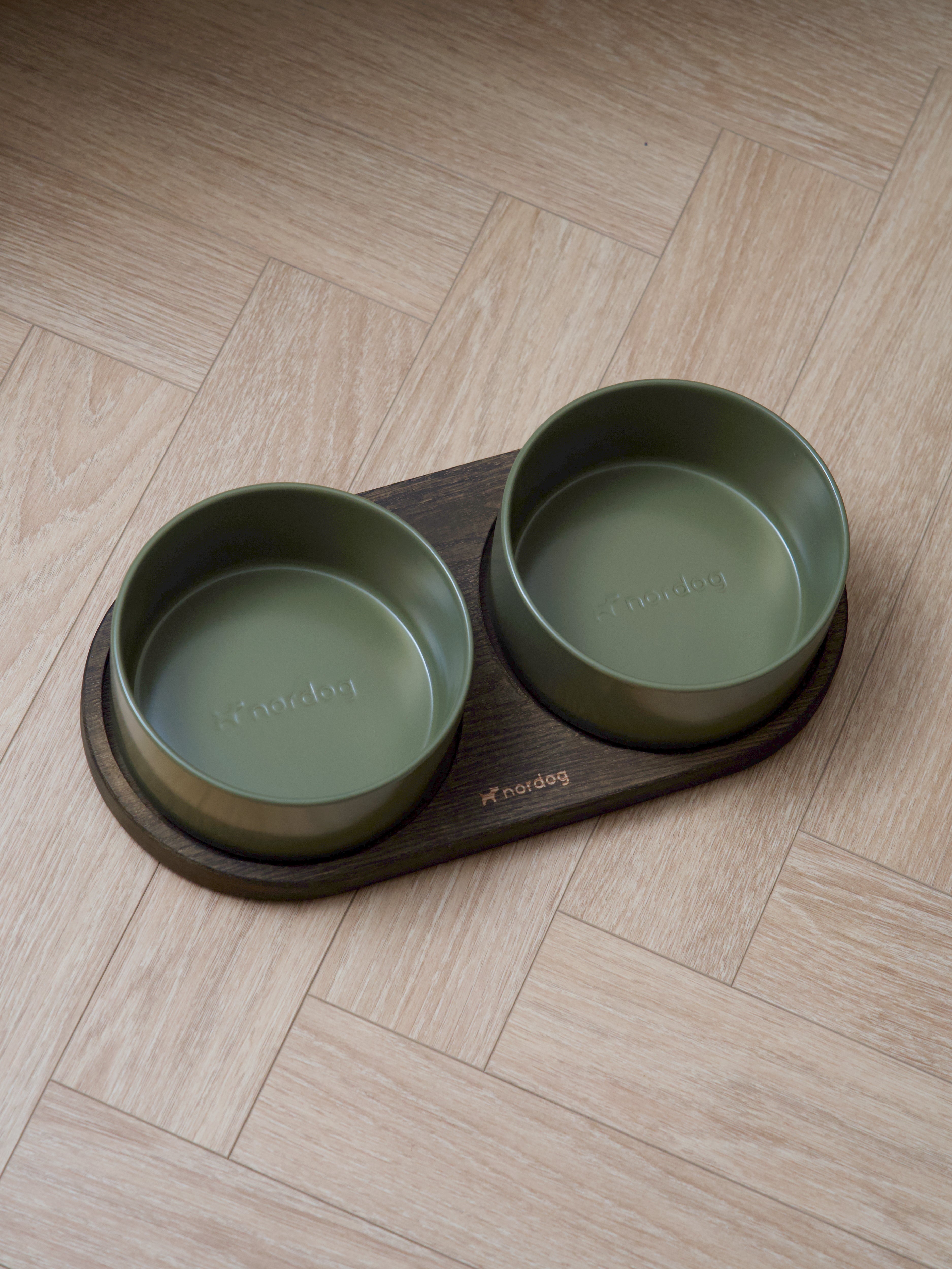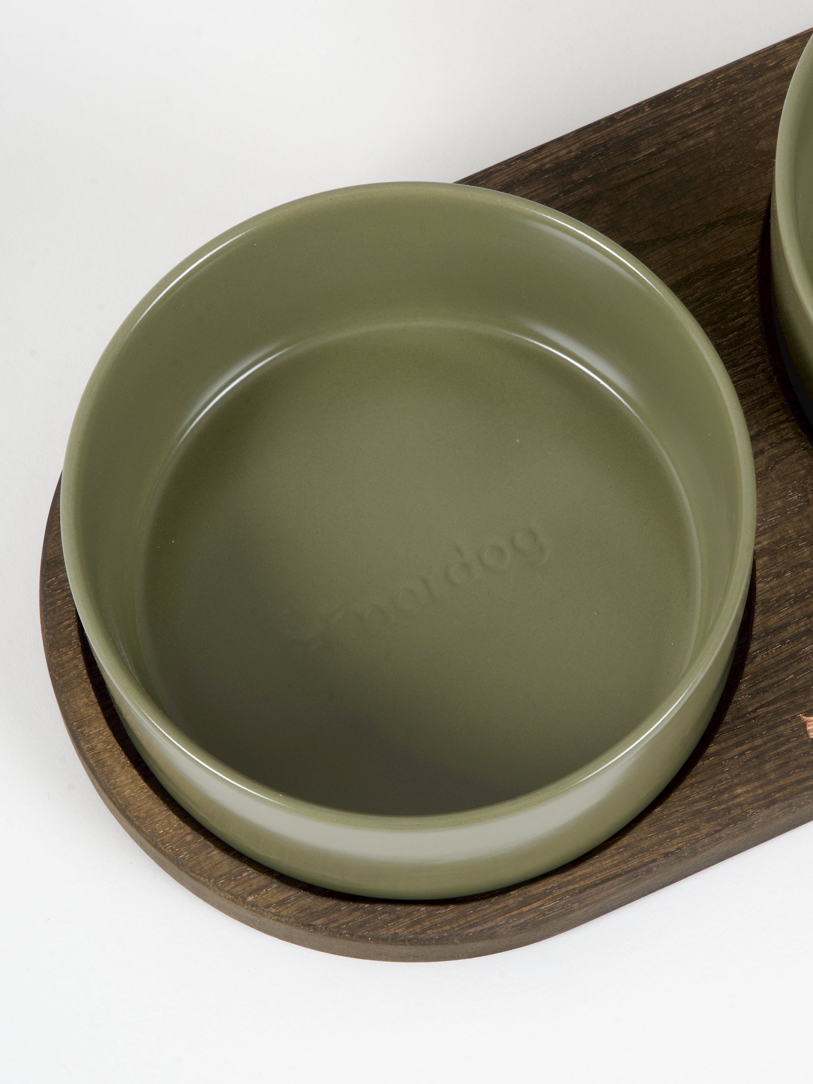 LIMITED EDITION - Barcelona Double Dog Bowl (smoked oak, green)