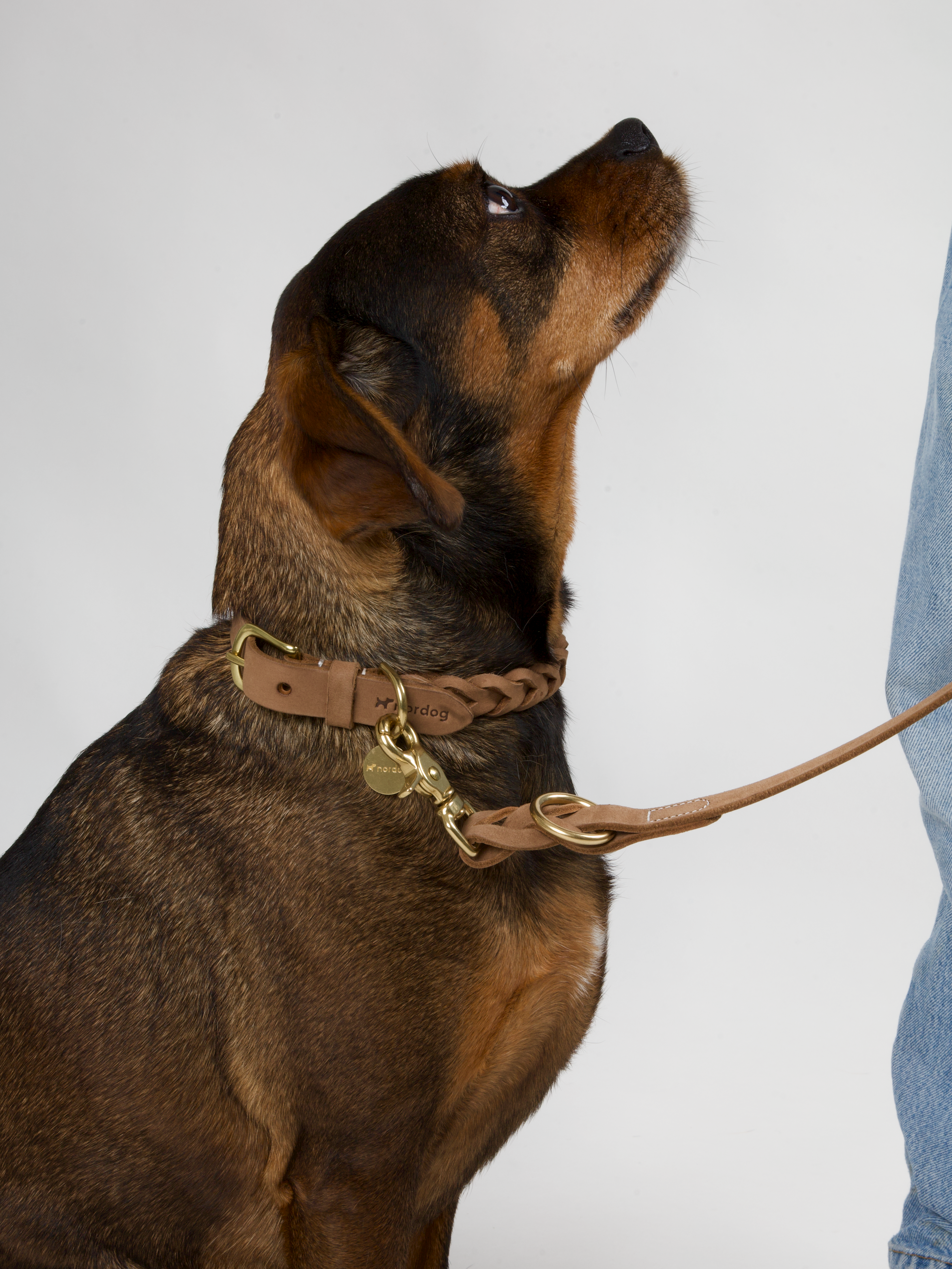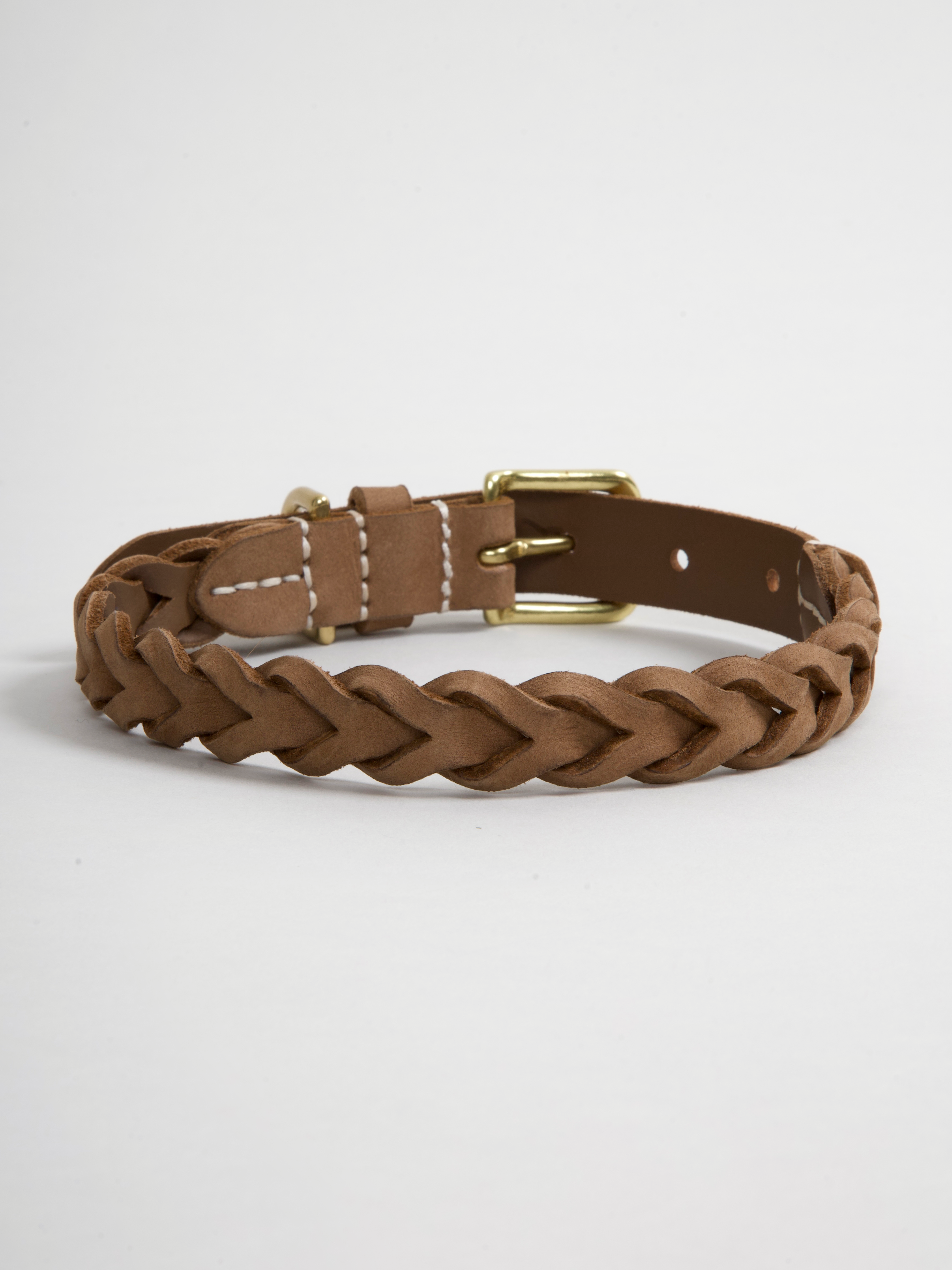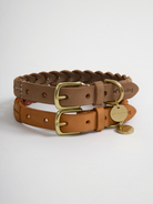 The braided design adds a subtle dimension to this collar, setting it apart from the crowd and adding an exclusive touch. With a range of colors, including the rich "cognac" and the inviting "nougat," you can match your dog's personality with the perfect shade.